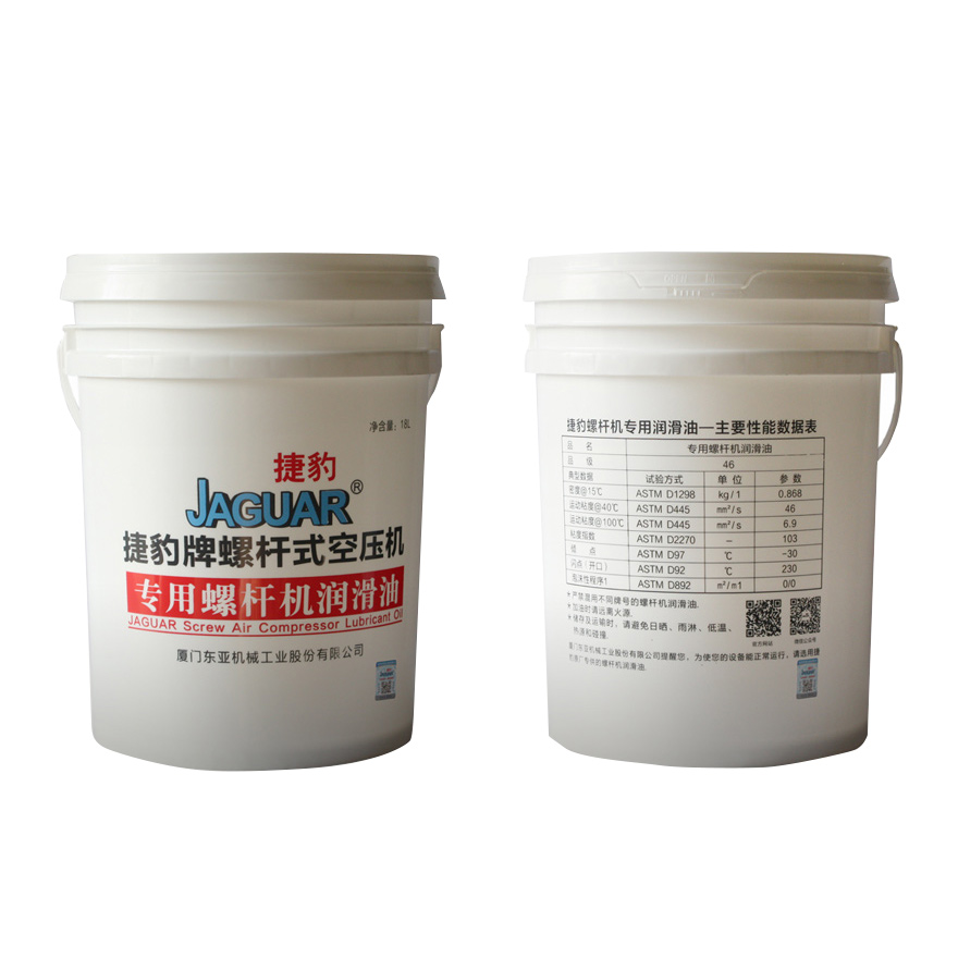 捷豹牌螺桿式空壓機(jī)選用原裝進(jìn)口高品質(zhì)螺桿式空壓機(jī)專用油,采用精制石蠟基基礎(chǔ)油及特選添加劑調(diào)制而成的優(yōu)質(zhì)無灰型空氣壓縮機(jī)油。給金屬表面提供全面的保護(hù),同時(shí)有極佳的抗氧化性和熱穩(wěn)定性,也有良好的抗磨性、分水性、空氣釋放性以及防腐蝕特性。
